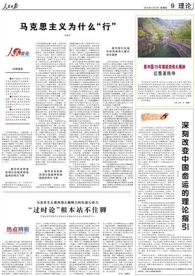 ■新中國成立70年來,中華民族迎來了從站起來、富起來到強起來的偉大飛躍,馬克思主義在中國大地放射出燦爛光芒、結(jié)出豐碩果實,生動詮釋了馬克思主義為什么“行”。