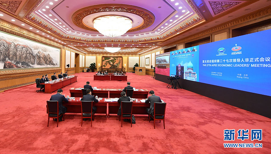 11月20日晚,國家主席習近平在北京以視頻方式出席亞太經合組織第二十七次領導人非正式會議并發表重要講話。 新華社記者 王曄 攝