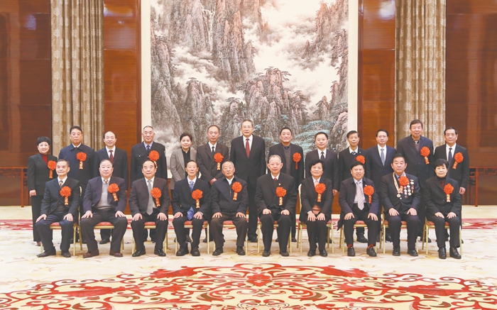 12月29日上午,省委書記李錦斌、省長李國英等省領導在合肥稻香樓賓館會見了我省受表彰的全國、全省離退休干部先進集體和先進個人代表,并合影留念。 記者 徐國康 攝