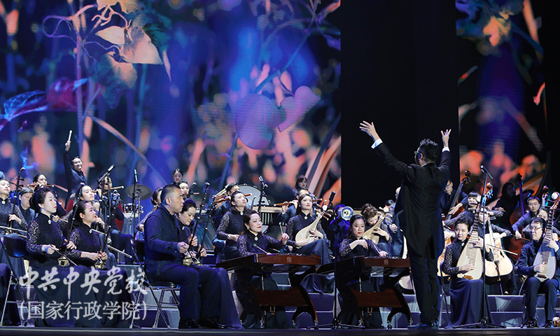 5月21日晚,上海民族樂團大型音樂現場《共同家園》在中央黨校(國家行政學院)北校區禮堂精彩上演。此次演出由中央黨校(國家行政學院)和上海市委宣傳部共同主辦。中央黨校(國家行政學院)副校(院)長王東京、甄占民、李季,國家藝術基金理事會副理事長、秘書長趙少華,上海市委宣傳部副部長胡勁軍,上海市文廣影視局原藝術總監劉文國,中國對外文化集團有限公司副總經理劉鵬,上海大劇院藝術中心黨委書記、總裁張鳴,上海民族樂團團長羅小慈等領導和嘉賓以及校(院)各直屬單位負責同志、全體學員約1800人觀看了演出。