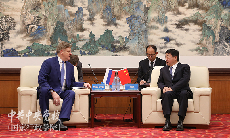 何毅亭表示,今年是中俄建交70周年,在習近平主席和普京總統的引領下,兩國友好關系始終保持高水平運行,建立了特殊友誼,成為當前大國關系的典范。他向俄方簡要介紹了中央黨校(國家行政學院)的歷史沿革、基本職能等情況,重點介紹了校(院)開展各類干部培訓的內容、形式、目標和經驗做法。他表示,開放辦學是校(院)的重要特色,希望以謝雷舍夫此次來訪為契機,推動校(院)與俄羅斯聯邦總統國民經濟與國家行政學院等機構擴大在干部培訓和學術研究等領域的合作交流。他還應詢回答了中國的干部管理體制、干部培養及評價機制等俄方關切的議題。