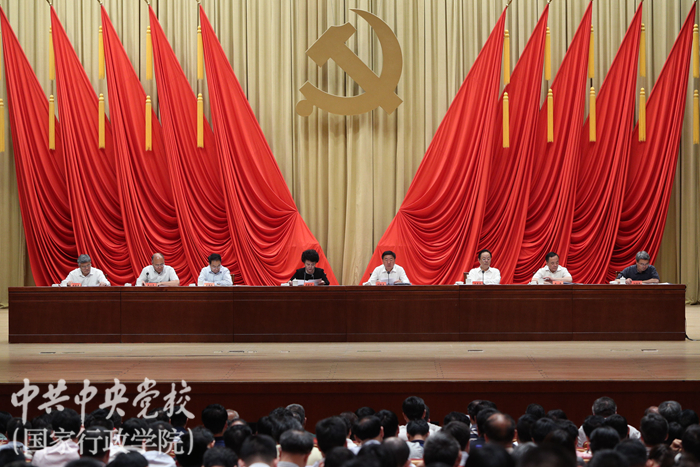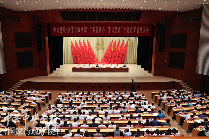 6月6日上午,中央黨校(國家行政學院)召開“不忘初心、牢記使命”主題教育動員大會,貫徹落實習近平總書記重要講話和黨中央決策部署,對全校主題教育進行動員部署。中央黨校(國家行政學院)分管日常工作的副校(院)長、校(院)主題教育領導小組組長何毅亭出席會議并作動員講話。中央第十九指導組組長裘援平出席會議并講話。副校(院)長王東京、李季、謝春濤,中央第十九指導組副組長宮蒲光,中央紀委國家監委駐中央組織部紀檢監察組副組長向勝國出席會議。副校(院)長、校(院)主題教育領導小組副組長甄占民主持會議。
