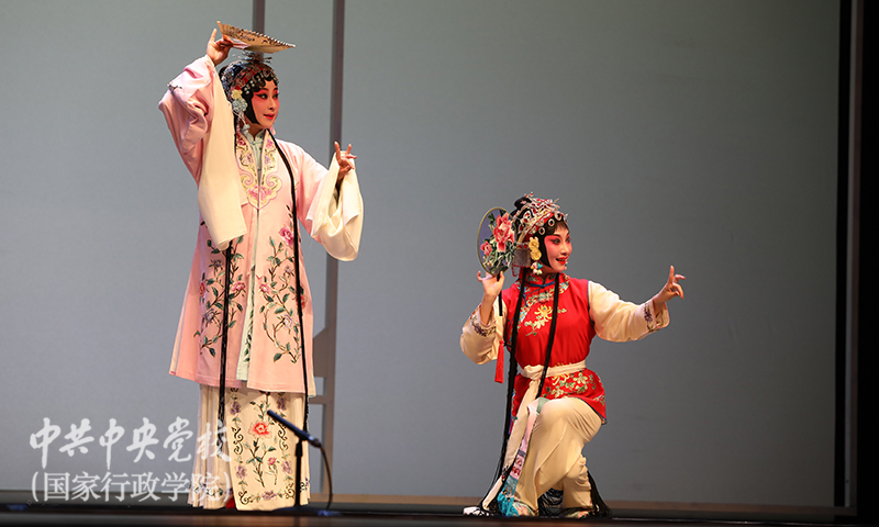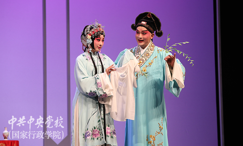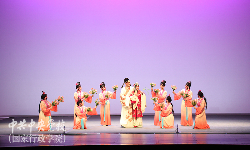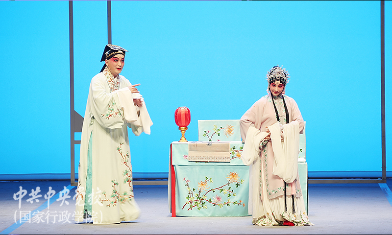 “情不知所起,一往而深,生者可以死,死可以生……。”6月11日晚,由上海昆劇團帶來的經典劇目《牡丹亭》在中央黨校(國家行政學院)精彩上演。湯顯祖筆下的杜麗娘、柳夢梅穿越時空,在舞臺上執手相依,傾情演繹了一部可歌可泣、生死離合的曠世之戀。演出由中共中央黨校(國家行政學院)、中共上海市委宣傳部主辦,中共中央黨校(國家行政學院)圖書和文化館承辦。中央黨校(國家行政學院)副校(院)長李季,上海市委宣傳部副部長、上海市電影局局長胡勁軍,上海市重大文藝創作領導小組副組長吳孝明,上海昆劇團國寶級昆劇表演藝術家張靜嫻等有關領導、嘉賓以及校(院)學工人員約1800人觀看了演出。