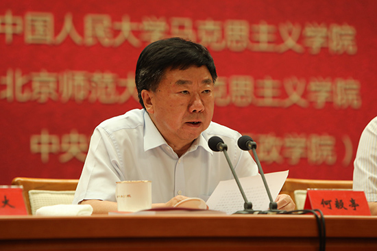 6月15日,由中國馬克思主義研究基金會、中央黨校(國家行政學院)馬克思主義學院聯合主辦,中央黨校(國家行政學院)培訓部和中國社會科學院、北京大學、清華大學、中國人民大學、復旦大學、武漢大學、北京師范大學、南京大學等9家單位馬克思主義學院協辦的“中國馬克思主義論壇2019(高端智庫)”在中央黨校(國家行政學院)召開。來自中央黨校(國家行政學院)、中國社會科學院、北京大學和清華大學等單位的專家學者,以及中央黨校(國家行政學院)部分在校學員、教師和研究生約500人參加了論壇。