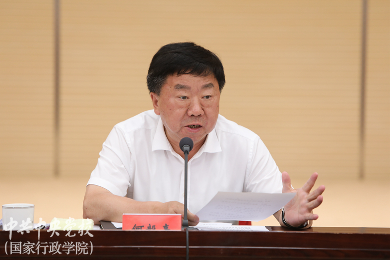 何毅亭說,中央黨校(國家行政學院)既是服務和推動黨中央決策部署貫徹落實的政治機關,更是黨中央培訓全國高中級領導干部的政治學校。這樣的定位和特點,決定了校(院)開展這次主題教育要發揮黨校特色、學出黨校人的底色。要充分利用校(院)深厚的歷史資源、理論資源、人才資源、紅色資源,把看家本領拿出來、把拿手好戲亮出來,增強主題教育的感染力和穿透力,通過主題教育做到思想再洗禮、初心再覺醒、使命再升華、忠誠再淬煉,進一步強化黨校姓黨的意識,在守初心、擔使命、找差距、抓落實上體現學習成效。各直屬單位領導班子特別是主要負責同志,要認真履行自身職責,從自身實際出發,抓實抓細抓好集中學習研討工作。相關部門和各學員部,要加強組織協調力度,切實安排好在校參加主題教育學員的集中學習研討工作。