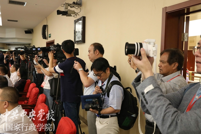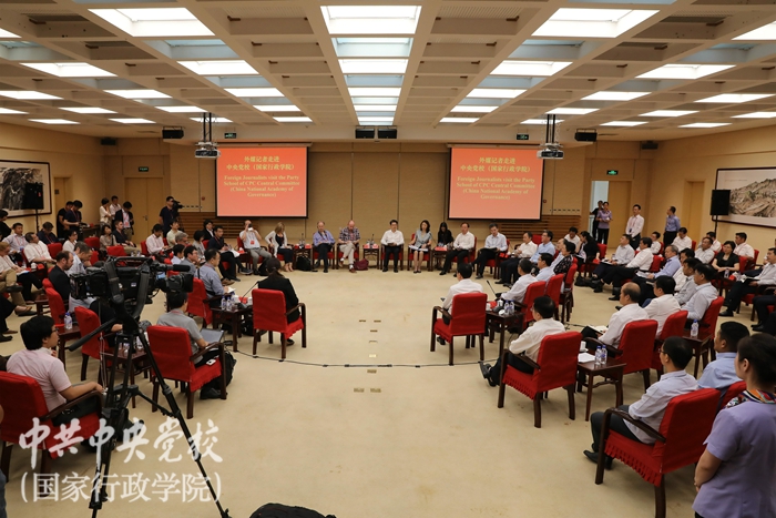 6月26日上午,35家外國(guó)媒體的43位記者走進(jìn)中央黨校(國(guó)家行政學(xué)院)北校區(qū),參觀校史館、觀摩課堂教學(xué),并與中央黨校(國(guó)家行政學(xué)院)師生進(jìn)行互動(dòng)交流。