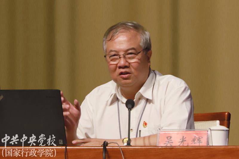 本次主題教育學員黨課由省部班(第66期)“戰略思維與領導能力”研究專題支部學員,中國商用飛機有限責任公司副總經理、黨委常委、中國工程院院士吳光輝主講,題目為“不忘初心、牢記使命——實現中國人的大飛機夢”。“戰略思維與領導能力”研究專題學員支部書記,司法部黨組書記、副部長袁曙宏主持。