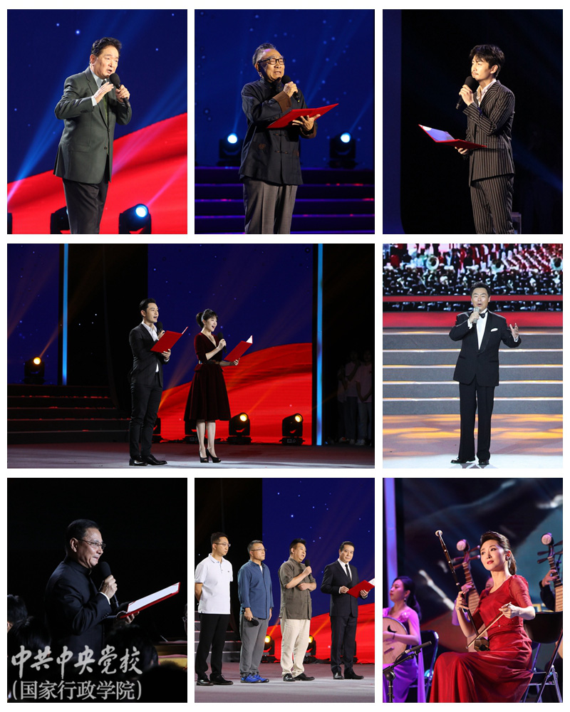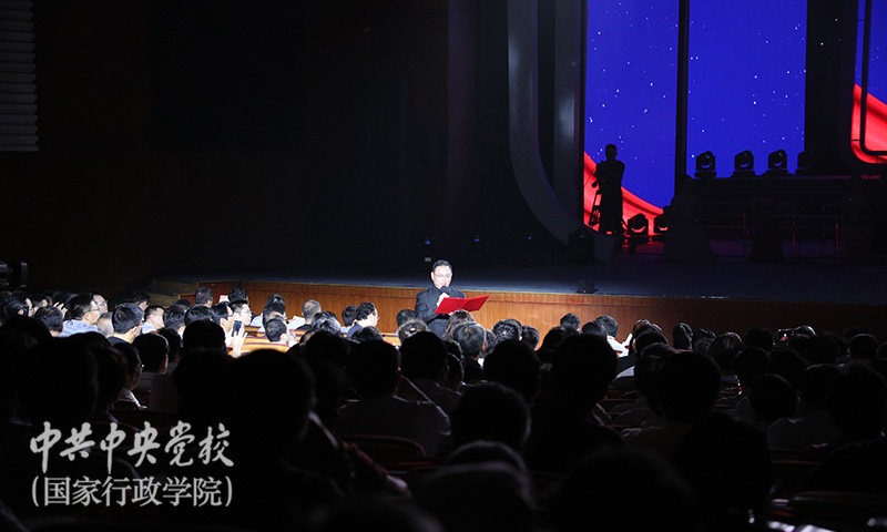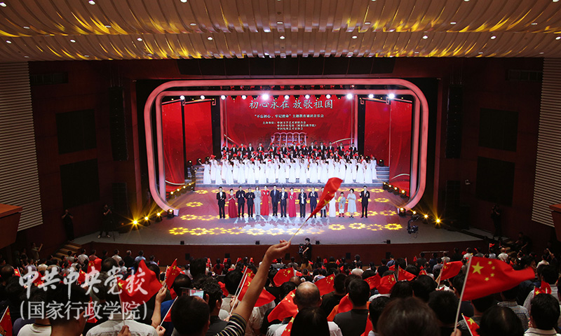 9月5日晚,“不忘初心、牢記使命”主題教育誦讀音樂會在北校區禮堂隆重舉行。本次誦讀音樂會由中央黨校(國家行政學院)、中國文學藝術界聯合會、中國電視藝術家協會共同主辦,由校(院)主題教育領導小組辦公室、圖書和文化館、中國文聯電視藝術中心承辦。中央黨校(國家行政學院)分管日常工作的副校(院)長何毅亭,中國文聯黨組書記、副主席李屹,中央和國家機關工委副書記、紀檢監察工委書記侯凱,中國文聯黨組成員、副主席李前光,中國文聯副主席、中國電視藝術家協會主席胡占凡,中國文聯副主席、中國書法家協會副主席陳振濂,副校(院)長王東京、甄占民、李季、謝春濤,全體在職黨員、部分離退休黨員、部分學員1800余人觀看演出。