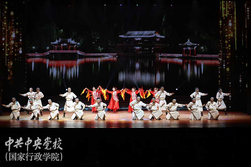 用文化藝術(shù)謳歌時代風(fēng)貌、開辟黨性教育第二課堂,是中央黨校(國家行政學(xué)院)的光榮傳統(tǒng)。校(院)教職工共計760人參加演出。參演的19個節(jié)目精選自2018年中央黨校(國家行政學(xué)院)慶祝改革開放40周年文藝匯演,參演單位分別結(jié)合本次演出的主題進(jìn)行了二次創(chuàng)作和改編。整臺演出主題鮮明,又真實反映了中央黨校(國家行政學(xué)院)火熱的教學(xué)科研管理工作場景,全面展現(xiàn)了校(院)群眾性文化工作建設(shè)的質(zhì)量水平。