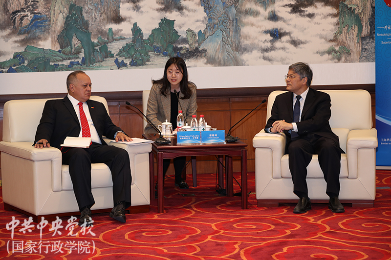謝春濤首先對(duì)卡韋略一行來訪表示歡迎,并介紹了新合并組建的中央黨校(國(guó)家行政學(xué)院)的主要職能及干部培訓(xùn)工作中的經(jīng)驗(yàn)和做法,希望通過卡韋略第一副主席來訪,進(jìn)一步加強(qiáng)校(院)與委方有關(guān)方面在干部培訓(xùn)等領(lǐng)域的交流與合作。