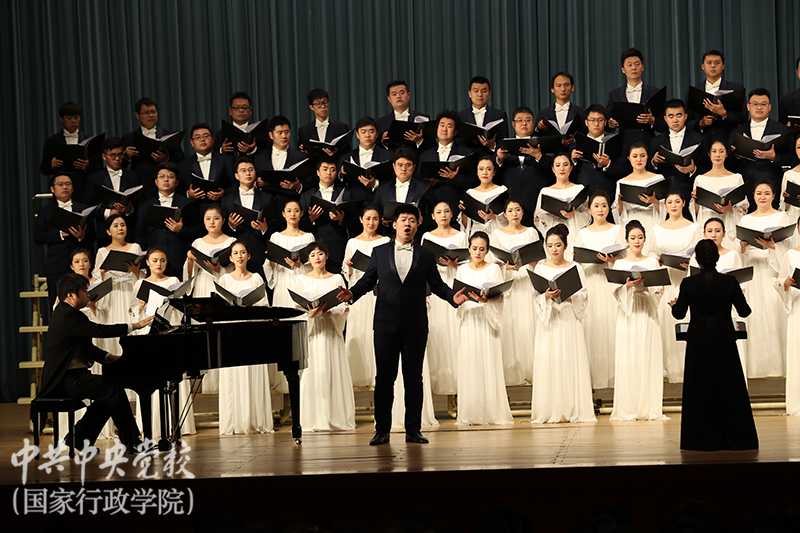 10月14日晚,中央黨校(國家行政學院)禮堂歌聲嘹亮、氣氛熱烈。由中央黨校(國家行政學院)圖書和文化館與國家大劇院共同主辦的《慶祝新中國成立70周年國家大劇院合唱團專場演出》傾情唱響。中央黨校(國家行政學院)分管日常工作的副校(院)長何毅亭、副校(院)長謝春濤,北京市委常委、國家大劇院黨委書記、院長王寧,國家大劇院黨委副書記、副院長趙佳琛,紀委書記呂杰,副院長李志祥、趙鐵春以及校(院)各直屬單位領導、在校學員、部分離退休干部近1900人觀看了演出。