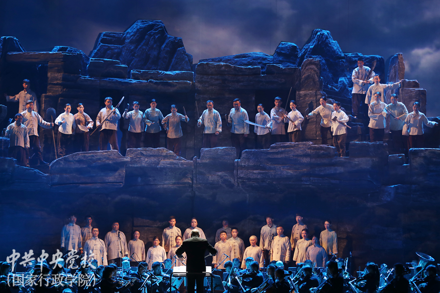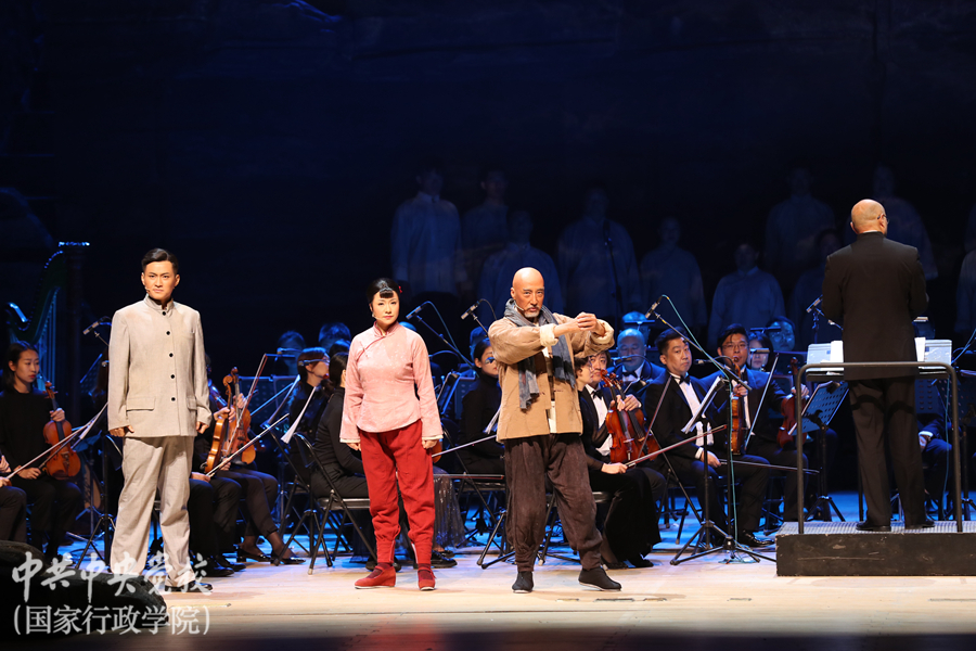 為深入學習貫徹習近平總書記關于弘揚沂蒙精神的重要講話精神,講好沂蒙故事、傳承紅色基因,10月21日晚,音樂會版歌劇《沂蒙山》在中央黨校(國家行政學院)北校區禮堂震撼上演。中央黨校(國家行政學院)分管日常工作的副校(院)長何毅亭、副校(院)長謝春濤,山東省委常委、宣傳部長關志鷗,山東省委黨校常務副校長徐聞,山東省文化和旅游廳黨組書記、廳長王磊等有關領導和嘉賓以及校(院)各直屬單位負責同志、在校學員1900余人觀看了演出。