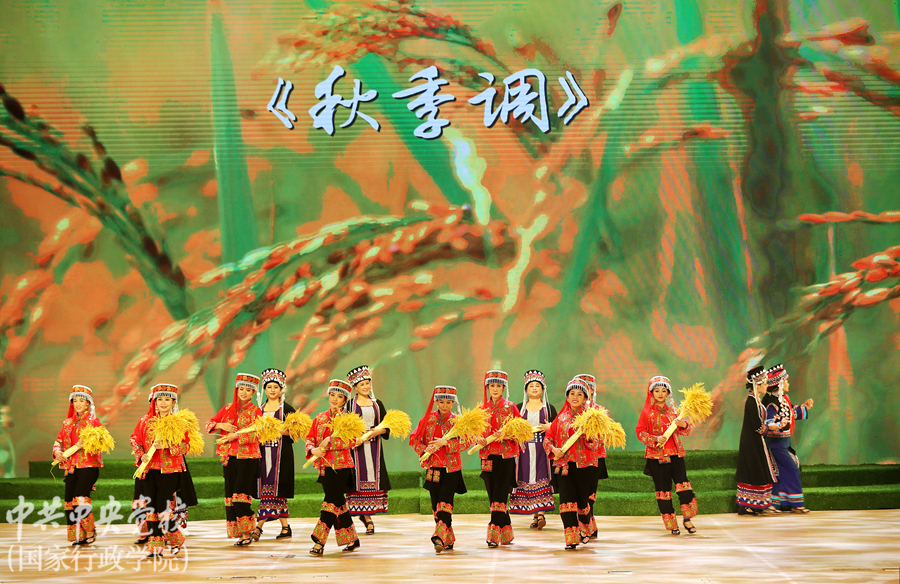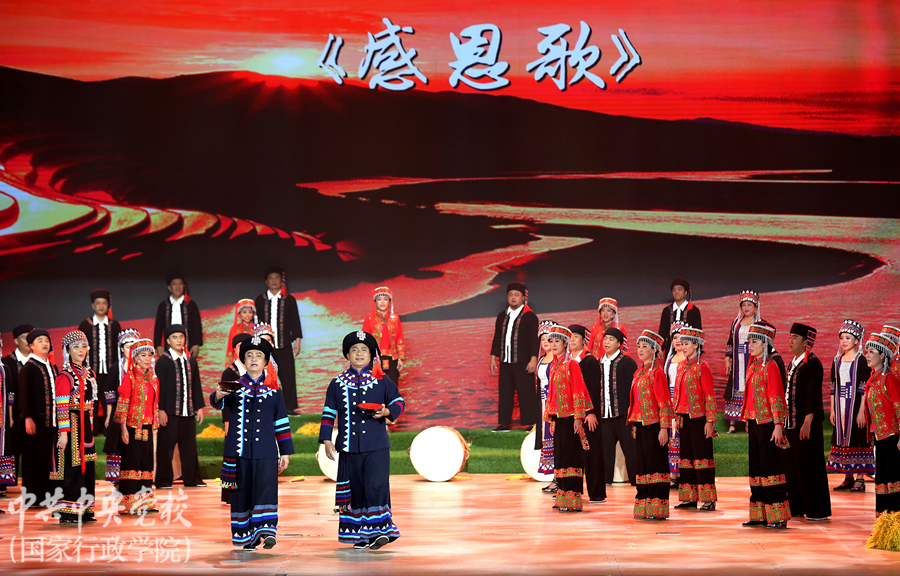 為深入學習貫徹習近平總書記關于弘揚中華優秀傳統文化的重要講話精神,傳承農耕文明、堅定文化自信,11月4日晚,云南省紅河哈尼族彝族自治州《哈尼古歌》在中央黨校(國家行政學院)北校區禮堂精彩上演。中央黨校(國家行政學院)分管日常工作的副校(院)長何毅亭,副校(院)長李季、謝春濤,云南省委常委、常務副省長宗國英,云南省人大常委會副主任、省總工會主席王樹芬,云南省委宣傳部副部長楊正權,云南省紅河哈尼族彝族自治州州委副書記、州人民政府州長羅萍等領導和嘉賓,以及校(院)各直屬單位負責同志、在校學員、教職工約1600人觀看了演出。