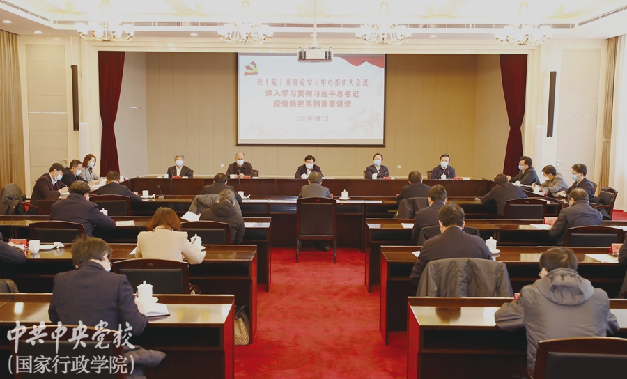 中央黨校(國家行政學院)3月5日召開校(院)委會理論學習中心組擴大會議,深入學習貫徹習近平總書記關于新冠肺炎疫情防控系列重要講話精神,對繼續(xù)扎扎實實做好疫情防控工作和校(院)常態(tài)工作提出要求。校(院)委會成員,秘書長、副教育長、副秘書長,各直屬單位主要負責人等近50人參加會議,中央紀委國家監(jiān)委駐中央組織部紀檢監(jiān)察組副組長羅興平等應邀出席會議。