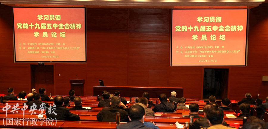 論壇上,省部級干部“習近平新時代中國特色社會主義思想”高級研修班六位學員聯系思想和工作實際,交流學習貫徹黨的十九屆五中全會精神的認識和體會。