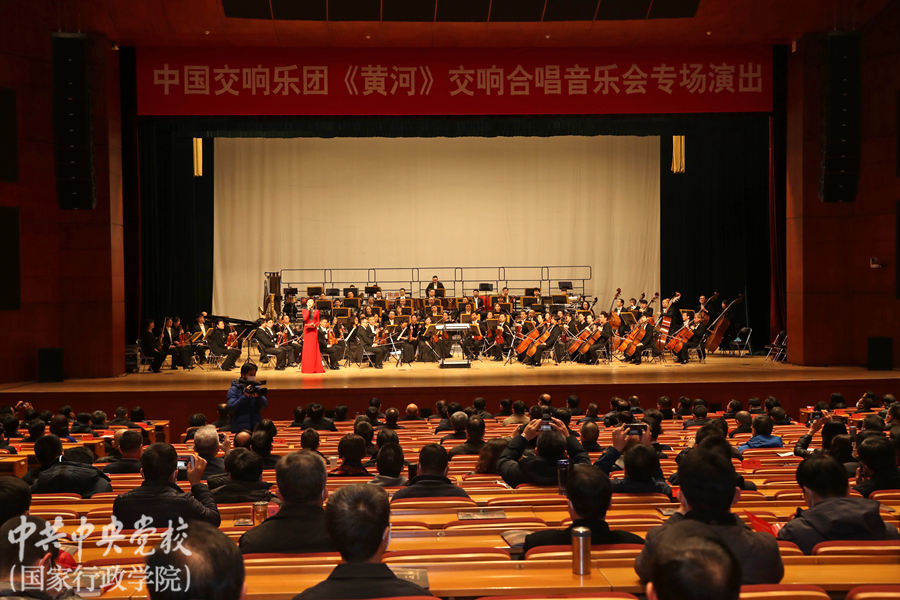 12月6日晚,中央黨校(國家行政學院)禮堂歌聲嘹亮、氣氛熱烈,由中央黨校(國家行政學院)與文化和旅游部共同主辦的中國交響樂團《黃河》交響合唱音樂會在這里傾情奏響。中央黨校(國家行政學院)副校(院)長李季、謝春濤,中國交響樂團黨委書記馬俊英、黨委副書記兼副團長鞏保江等領導和嘉賓以及在校全體學員觀看了演出。