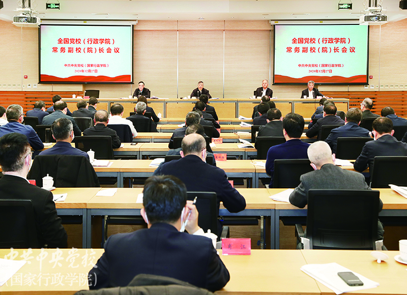 全國黨校(行政學(xué)院)常務(wù)副校(院)長會(huì)議2020年12月27日在中央黨校(國家行政學(xué)院)召開。會(huì)議主題是,深入貫徹習(xí)近平總書記關(guān)于黨校辦學(xué)治校系列重要指示精神,貫徹黨的十九大和十九屆二中、三中、四中、五中全會(huì)精神,進(jìn)一步推動(dòng)《中國共產(chǎn)黨黨校(行政學(xué)院)工作條例》(以下簡稱《條例》)和全國黨校(行政學(xué)院)校(院)長會(huì)議精神落實(shí),研究“十四五”時(shí)期黨校(行政學(xué)院)事業(yè)發(fā)展。中央黨校(國家行政學(xué)院)分管日常工作的副校(院)長李書磊出席會(huì)議并講話,副校(院)長甄占民作會(huì)議討論小結(jié),副校(院)長李季主持會(huì)議,副校(院)長李毅、謝春濤出席會(huì)議。