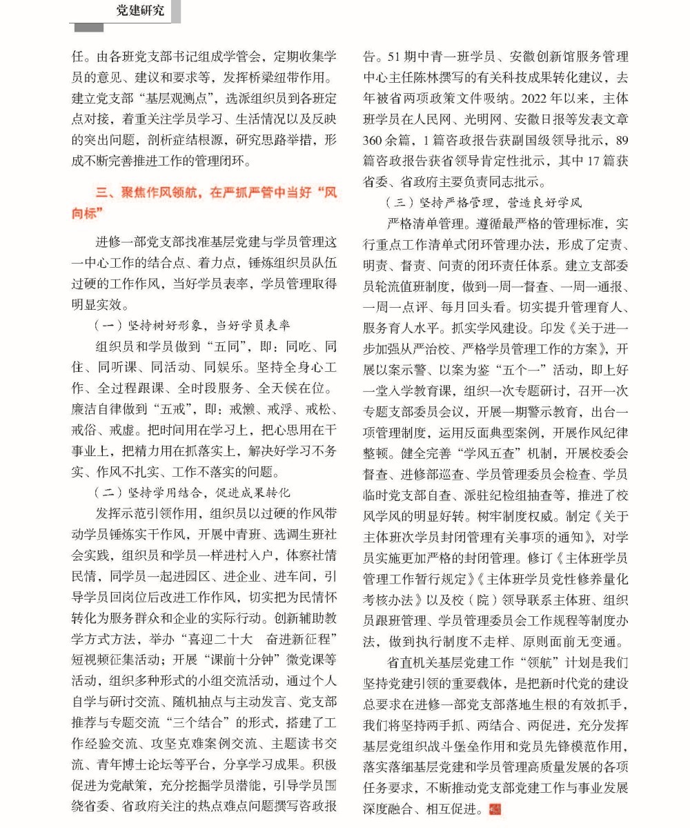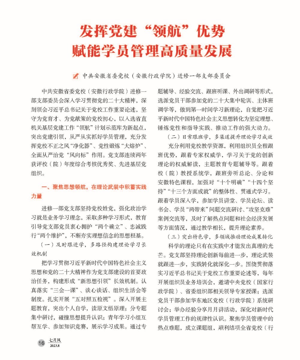 《七月風》刊文 | 發揮黨建“領航”優勢,賦能學員管理高質量發展