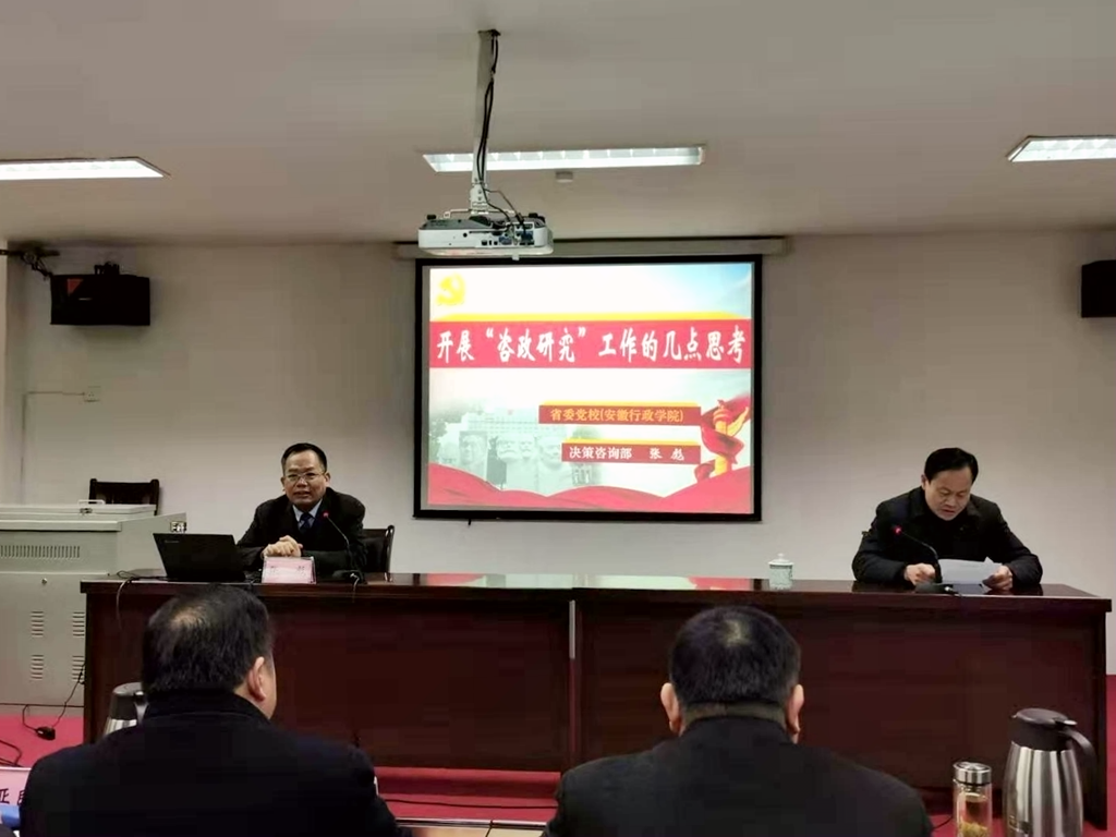 1月9日上午,亳州市黨校系統(tǒng)課題申報與咨政報告撰寫專題輔導(dǎo)報告會在市委黨校舉行。省委黨校(安徽行政學(xué)院)副校(院)長袁維海、決策咨詢部主任張彪分別就課題申報與咨政報告撰寫作輔導(dǎo)報告。市委黨校常務(wù)副校長張潔主持會議,全市黨校系統(tǒng)60余名教研人員參加了會議。