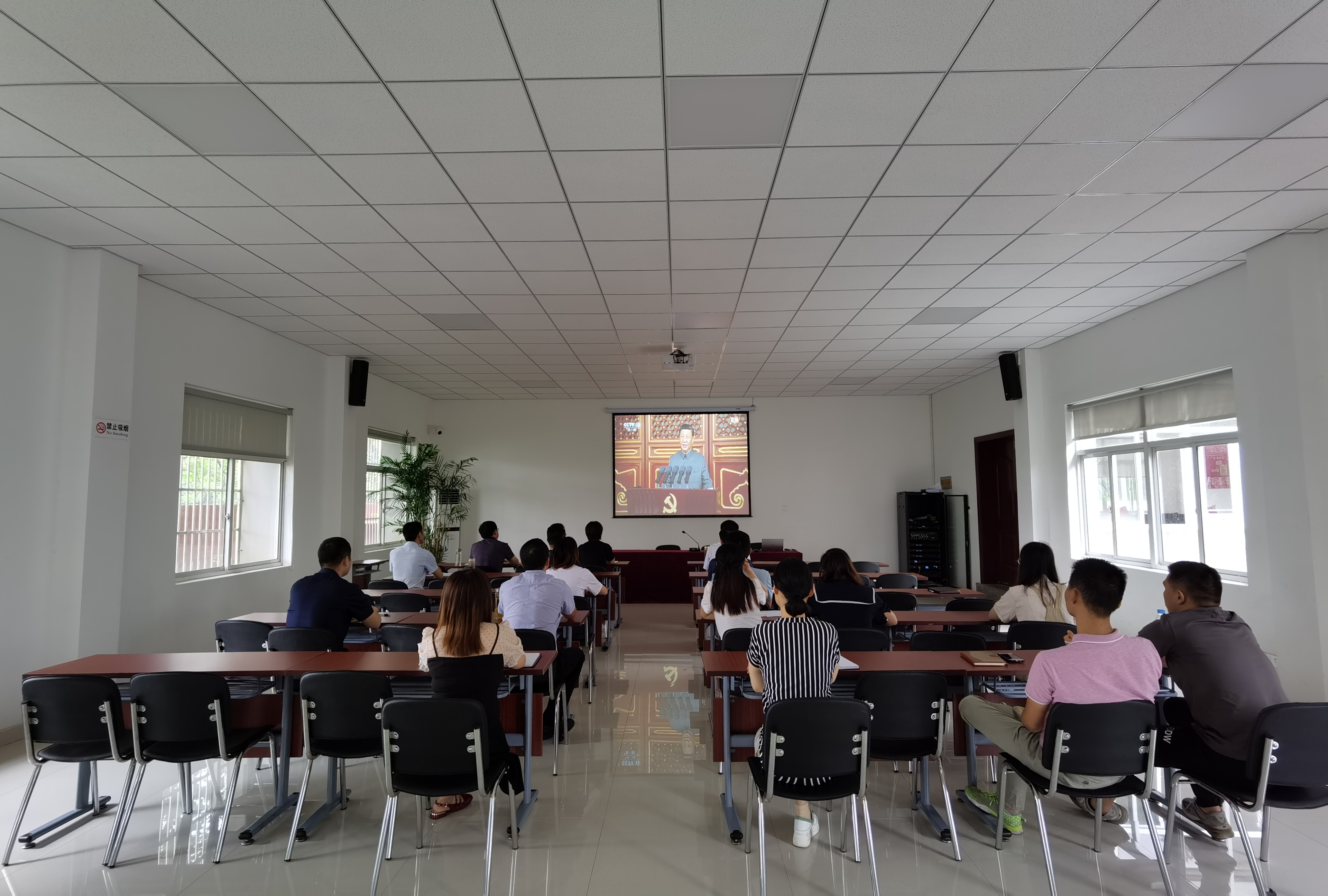 7月1日,市委黨校組織全體教職工集中觀看慶祝建黨一百周年活動現場直播。上午8點前,全體教職工早早地來到案例教學室等待直播的開始。