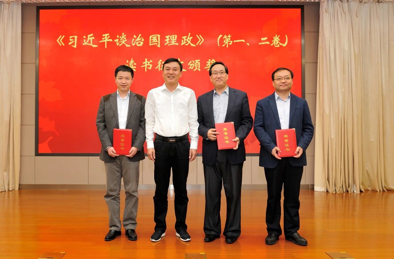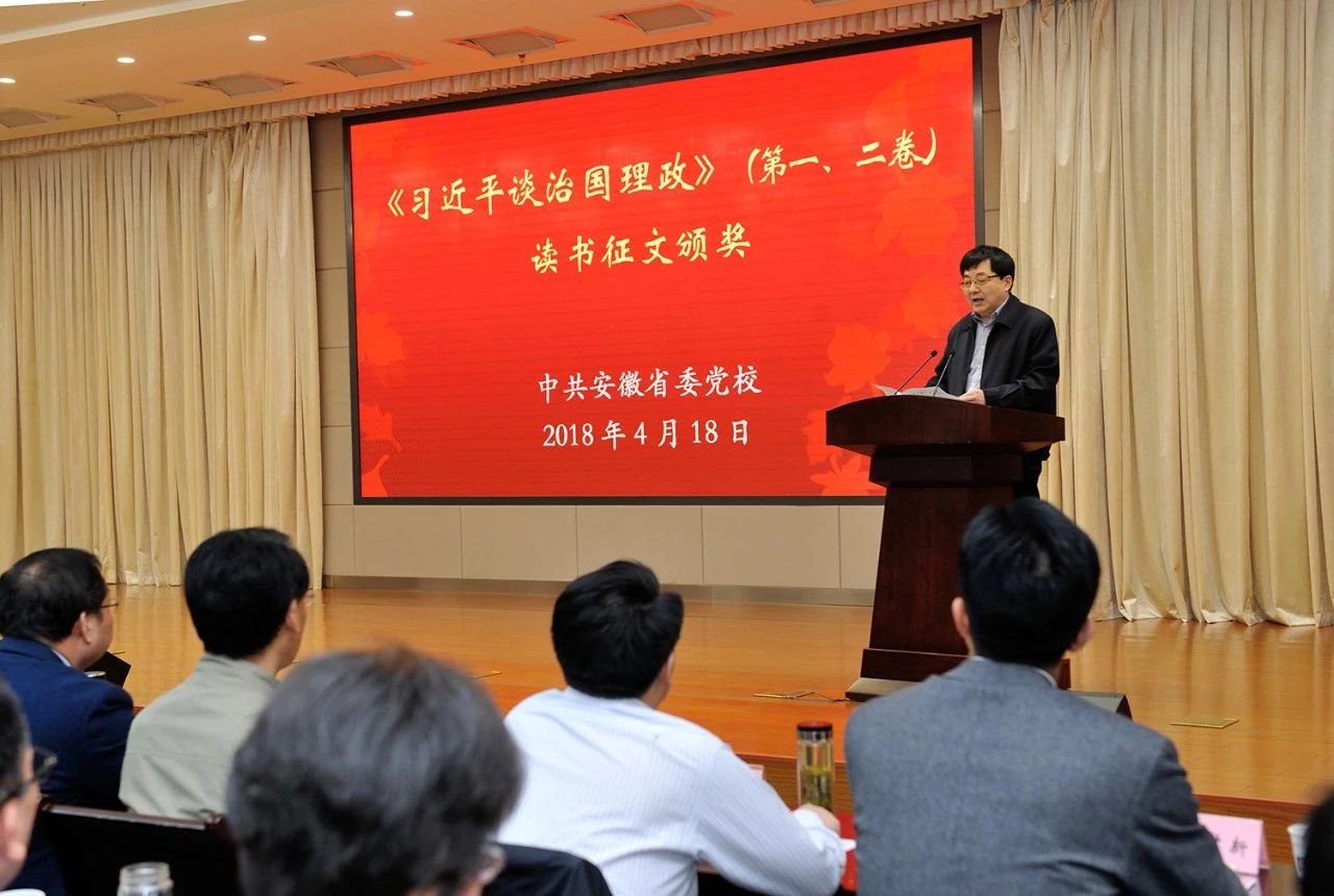 4月18日,省委黨校舉行《習近平談治國理政》(第一卷、二卷)讀書征文頒獎會。校領導張永、王正國、鄧玉明、胡忠明、丁毅出席并頒獎。省委黨校副教育長,各直屬單位主要負責人,參加讀書沙龍活動的主體班學員和教職工代表200余人參加會議。