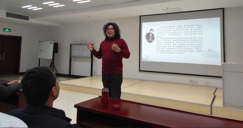 1月10日下午,101教室濟濟一堂,校(院)教師、第55、56期哲社班部分學員正在認真聽取講座,主講人為第55、56期哲社班學員、長期從事聲樂教學研究工作的滁州學院音樂學院周子翔副教授。???