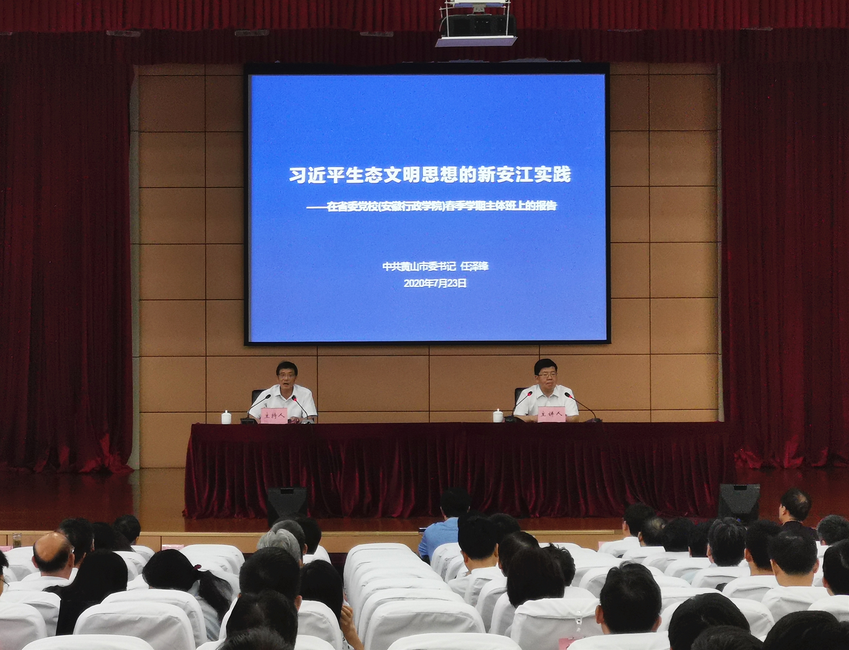 7月23日下午,黃山市委書記任澤鋒應邀到校(院)為主體班學員作題為“習近平生態文明思想的新安江實踐”的專題報告,副校(院)長胡忠明主持。