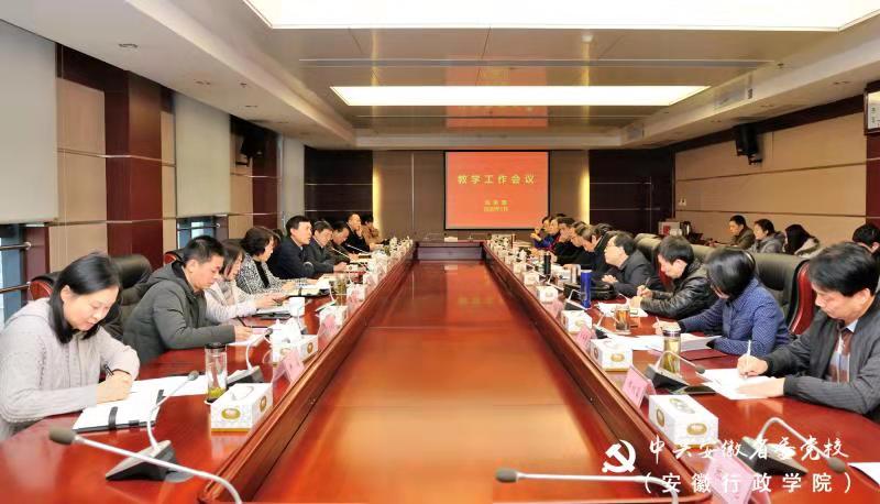 1月9日下午,省委黨校(安徽行政學院)召開會議,總結2019年并安排部署2020年教學教研工作。常務副校(院)長張永出席并講話,教育長胡忠明主持,教務部、教師進修學院和各教研部門主要負責人參加會議。