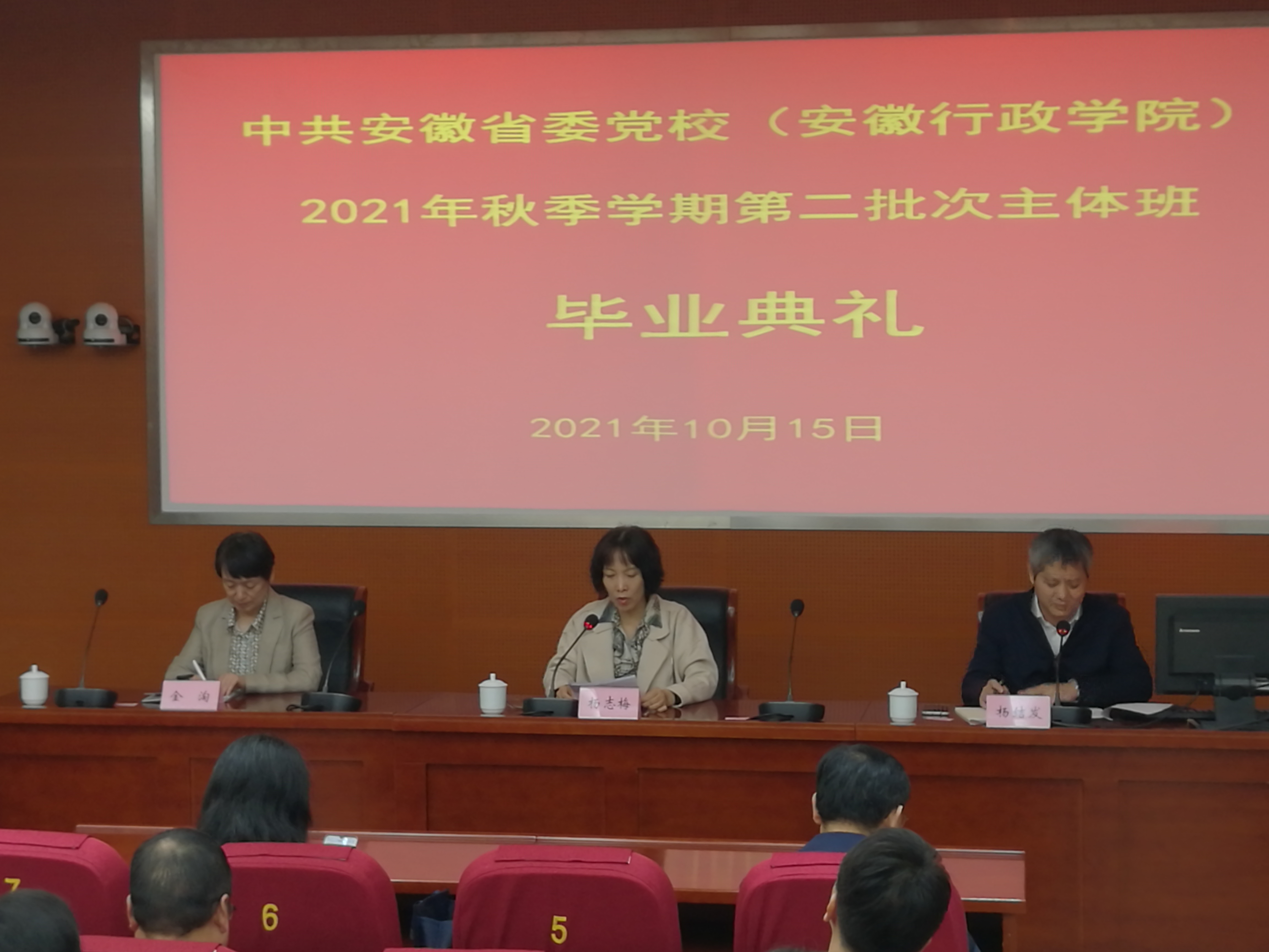10月15日上午,省委黨校(安徽行政學(xué)院)舉行第二批次主體班畢業(yè)典禮。副教育長(zhǎng)王敬志、楊志梅分別在本部和中校區(qū)出席典禮并講話。