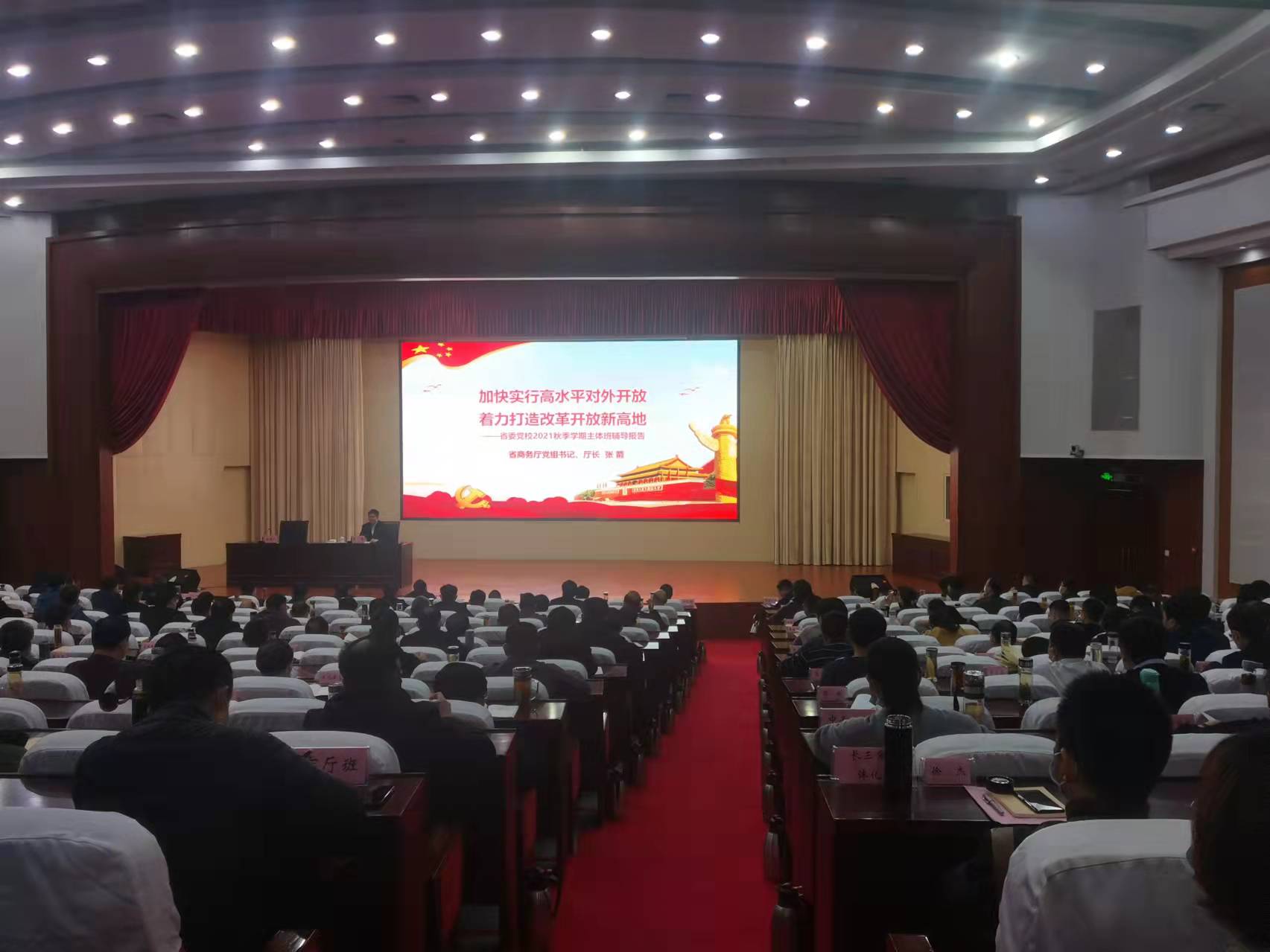 12月14日下午,省商務廳黨組書記、廳長張箭應邀為主體班學員作“加快實行高水平對外開放 著力打造改革開放新高地”專題報告,副校(院)長、一級巡視員胡忠明主持。