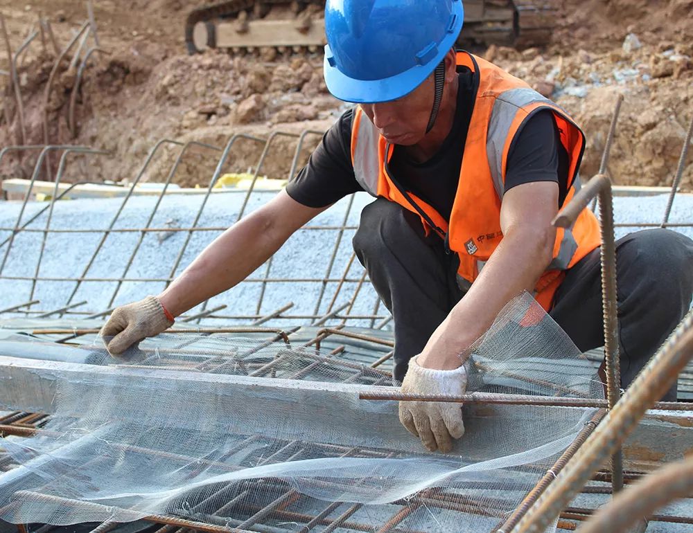 中建三局二公司承建的省委黨校學員中心項目工地,建筑工人正在加緊施工,烈日下鋼筋曬得燙手。