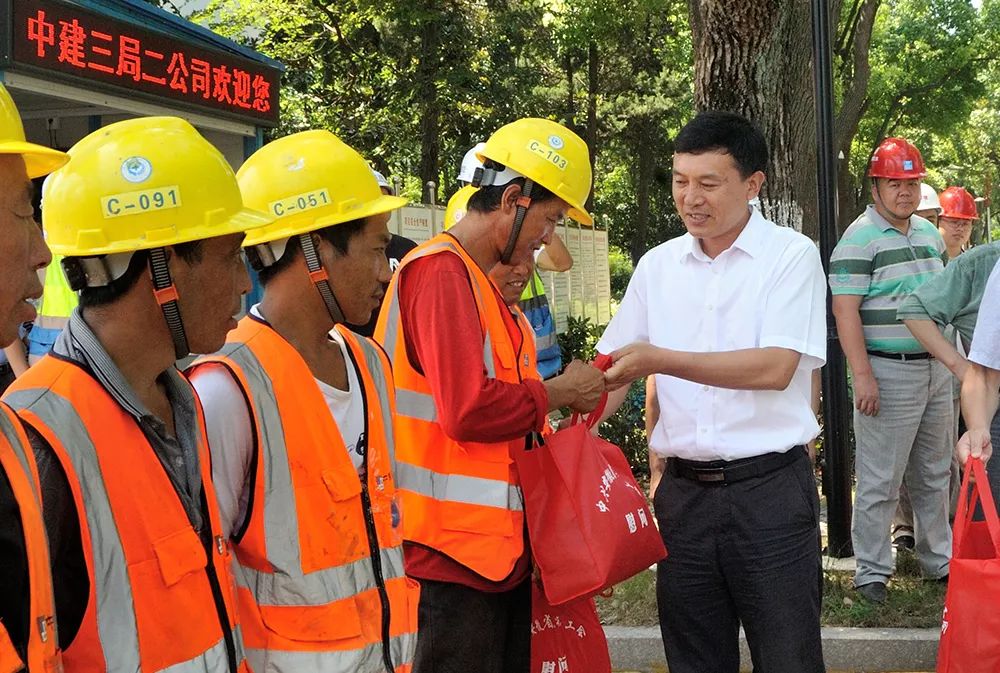 校領導鄧玉明、丁毅走訪慰問奮戰在高溫下的勞動者。