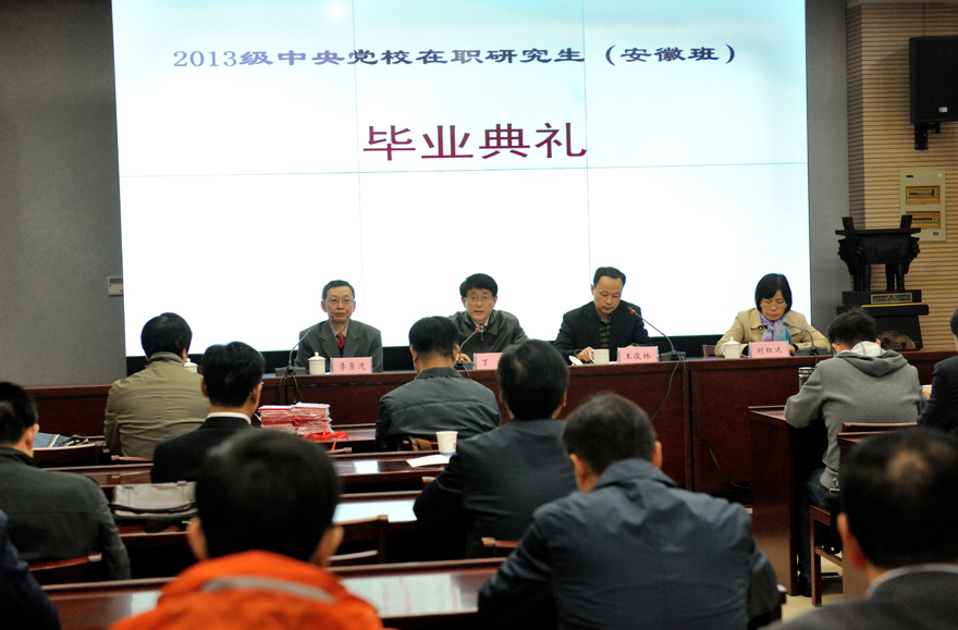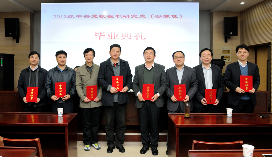 會議對榮獲2013級中央黨校在職研究生安徽學區的“優秀學員”和“優秀學生干部”進行了表彰,并向全體畢業學員頒發了畢業證書。