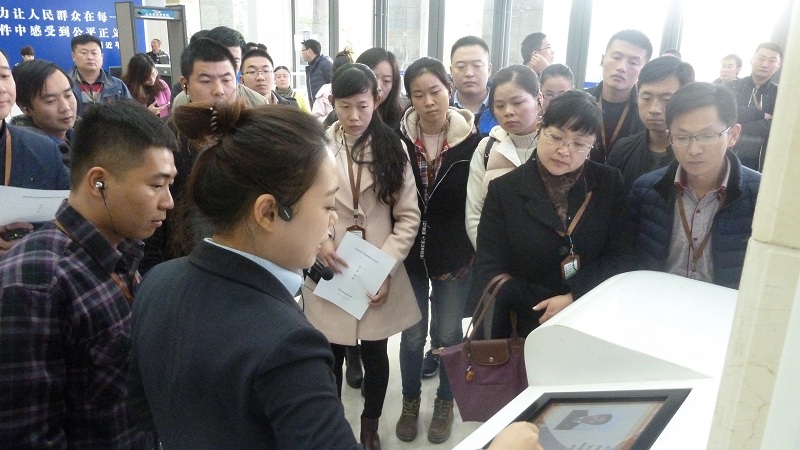 在法院訴訟服務(wù)中心講解員的引導(dǎo)下,大家參觀學(xué)習(xí)了該區(qū)近年來(lái)的司法體制建設(shè)項(xiàng)目,特別是同學(xué)們還親身體驗(yàn)了該中心首創(chuàng)的“e調(diào)解”平臺(tái),參與了線上直播庭審案件,感受到蜀山區(qū)在司法體制建設(shè)方面的確實(shí)實(shí)在在地發(fā)揮了社會(huì)參與、廣泛搭臺(tái)、多頻調(diào)解等機(jī)制的作用,體現(xiàn)了便民、利民的服務(wù)原則