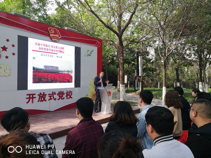 4月14日上午,淮北市委黨校2016級公管專業研究生班在世紀廣場開放式黨校舉辦開放式黨課,全體學員參加了活動。