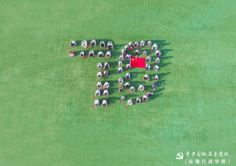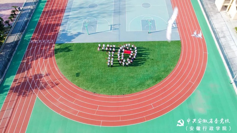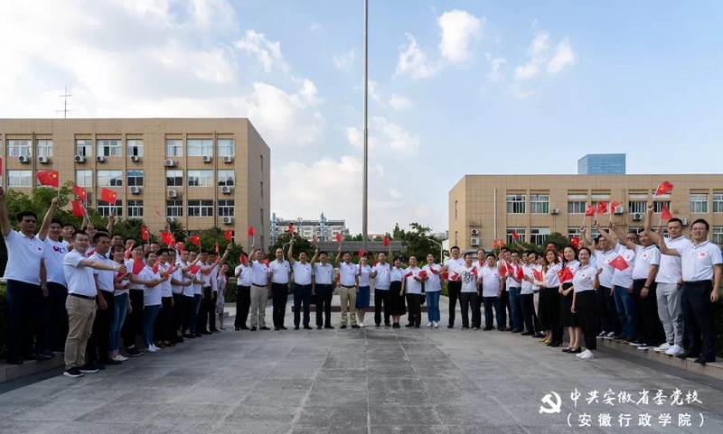 “我和我的祖國,一刻也不能分割,無論我走到哪里,都流出一首贊歌……”拍攝當天,中央黨校在職研究生2018級(安徽班)全體學員按照分組,從省委黨校(安徽行政學院)中校區大門、教室、圖書館、報告廳等地匯聚到國旗下,揮動起手中的小國旗,一同放聲高歌《我和我的祖國》。現場氣氛歡快熱烈,深情的歌唱表達了學員們對祖國的熱愛之情和美好祝福。在操場,學員們拼出“70”圖案,匯聚成一幅動人畫卷,慶祝中華人民共和國成立70周年,體現了學員們對祖國最深沉的愛。