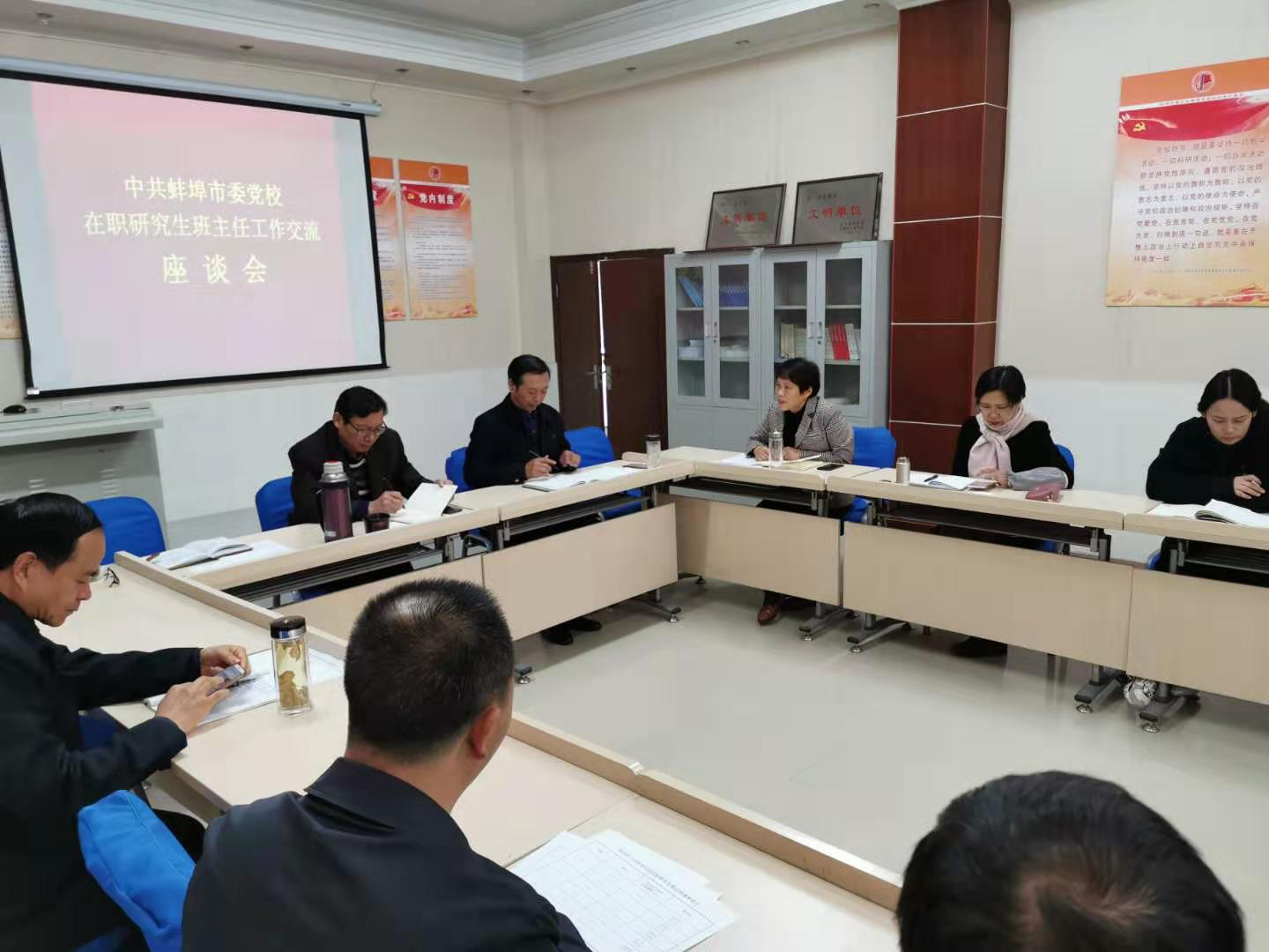 2019年11月22日,蚌埠市委黨校召開了在職研究生班主任工作交流會,就新形勢下如何進一步加強和改進研究生教育工作,不斷提高研究生辦學水平,進行了充分的研討交流。