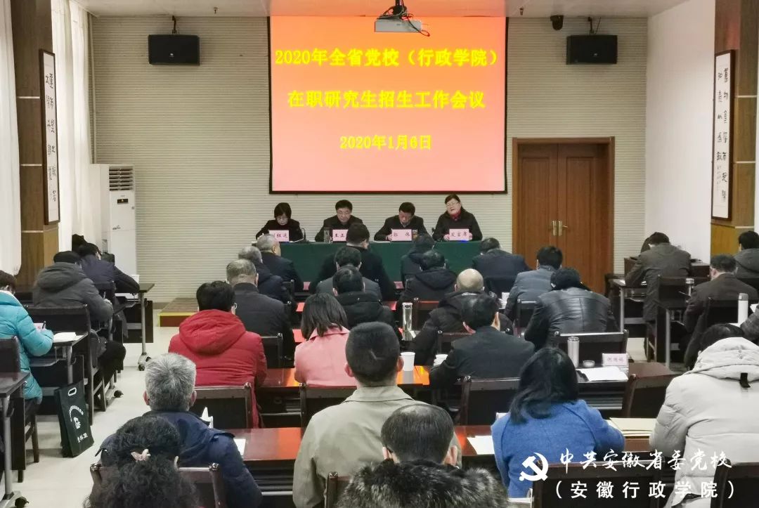 1月6日,全省黨校(行政學院)2020年在職研究生招生工作會議在省委黨校(安徽行政學院)召開。副校(院)長王正國出席并講話。各省轄市委黨校和省直工委黨校分管研究生教育校領導、研究生辦主任及省委黨校(安徽行政學院)研究生部全體人員參加會議。