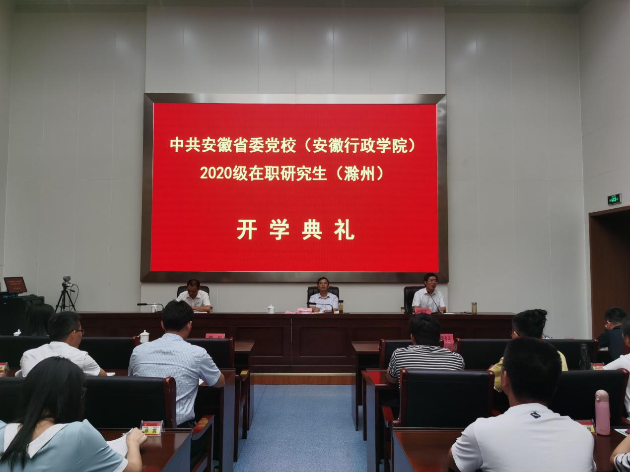 9月12日上午,滁州市委黨校教學點在教學樓205報告廳舉行省委黨校2020級在職研究生開學典禮。市委黨校常務副校長焦義朝、副校長葉校正、2020級經管和公管專業136名學員、班主任及研辦工作人員參加開學典禮。