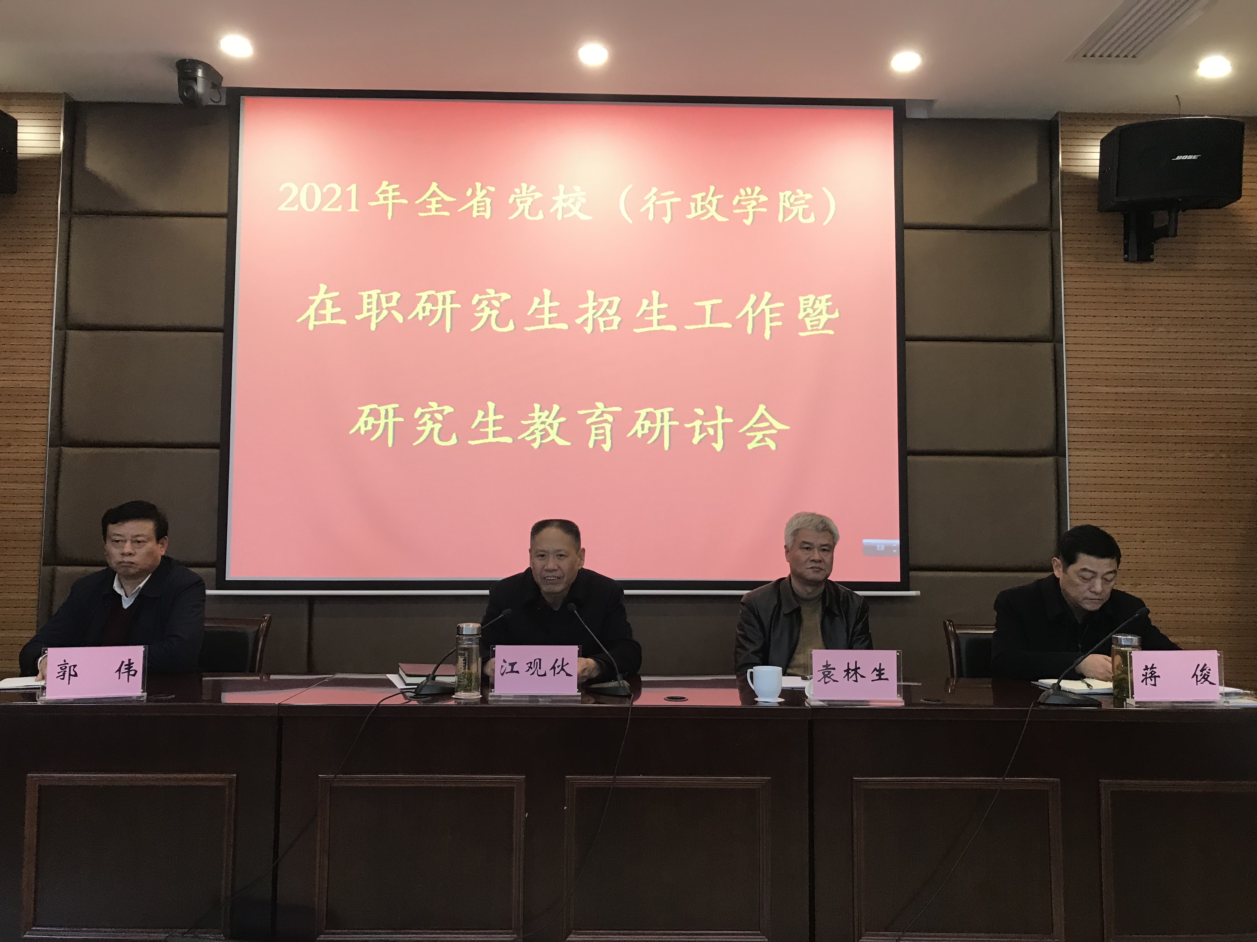 江觀伙在講話中提出,2020年是極不平凡的一年,在疫情防控常態背景下,全省研究生教育有序進行,圓滿完成了招生、教學、論文等各項工作。2021年要持續推動研究生教育高質量發展。堅持黨校姓黨,彰顯黨校特色,堅持把黨的理論教育和黨性教育貫穿于整個研究生教育教學的全過程。引導學員加強黨性鍛煉、提升黨性修養。要做強黨校品牌,加強學風建設、強化教學管理、從嚴治考。江觀伙對招生工作提出要求,做好招生宣傳工作,落實研究生招生責任,做好招生的全流程管控與學員服務工作。在 “十四五”開局之時,努力實現研究生教育持續、穩定、健康發展。