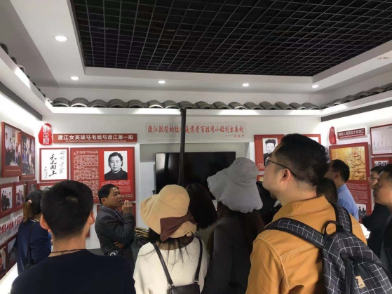 參觀紀念渡江戰役展廳,重溫革命歷史,緬懷革命先烈。面對鮮艷的中國共產黨黨旗,全體黨員集體重溫入黨誓詞,鏗鏘有力的宣誓聲,表達了傳承紅色基因、矢志不渝奮斗的堅定決心。隨后,大家走進展廳,仔細觀看展覽,一幅幅圖片,一件件實物,把大家帶回到戰火紛飛的革命年代,學員們不時駐足,認真觀展,了解有關情況。渡江戰役中,年僅14歲的馬毛姐冒著敵人的密集炮火,護送解放軍過江,途中遭敵軍炮擊負傷仍堅持撐船,首批抵達文興洲東風泡(今屬胥壩鄉群心村),她的渡船被譽為“渡江第一船”。在“渡江英雄馬毛姐與渡江第一船”展板前,大家駐足良久,深刻領會習近平總書記“渡江戰役的勝利是靠老百姓用小船劃出來的”這一重要論述。