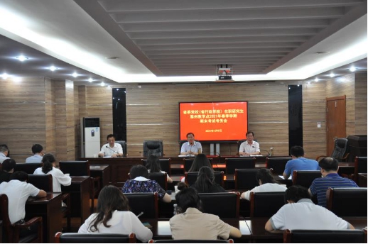 7月9日下午,滁州市委黨校(市行政學院)召開2021年在職研究生春季學期期末考試考務會。常務副校長焦義朝出席會議并講話。分管副校長葉校正和全體監考、考務人員參加會議。