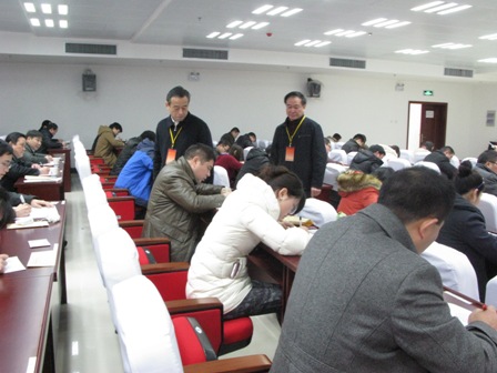 2014年元月10日—13日,安徽省委黨校舉行了2013年下半年全省在職研究生期末考試。省委黨校常務副校長張岳峰同志和副校長蔡憲同志親臨考試現場巡考,對研究生部的考務工作給予了高度評價。 ??? 圖為省委黨校常務副校長張岳峰同志和副校長蔡憲同志在2013級經管專業考場巡考。