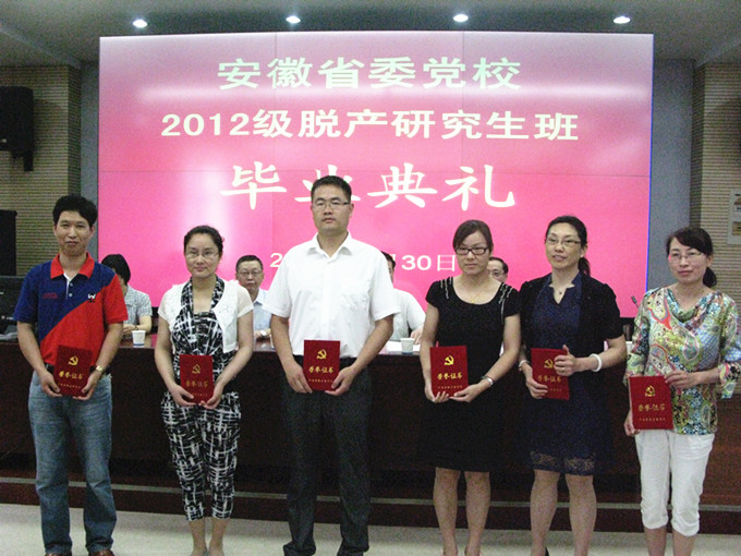 2014年6月30日,研究生部舉行2012級脫產研究生班畢業典禮。省委黨校副校長蔡憲,公共管理專業教學指導組長汪興福教授、研究生部主任李景道、副主任劉紅運,脫產班班主任姜彥秋以及全體學員參加了畢業典禮。